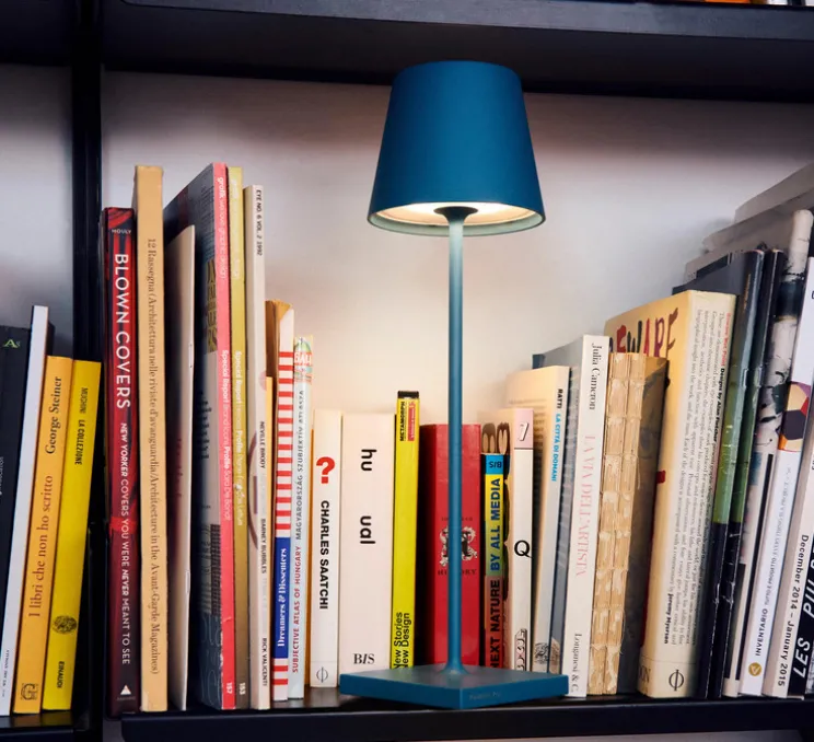 Voici la baladeuse rechargeable Poldina de couleur bleu du designer Federico De Majo pour la maison italienne Zafferano !