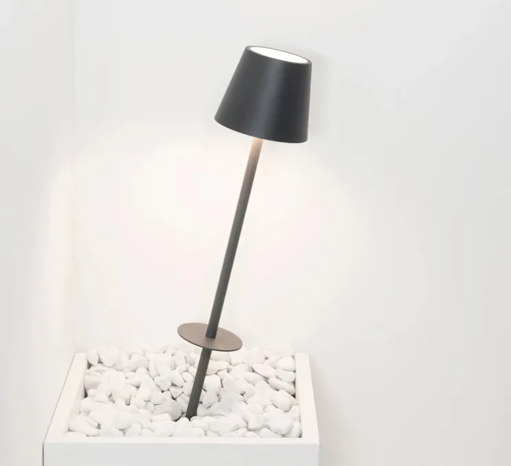 La Poldina se caractérise par sa forme moderne et minimaliste lui permettant de s’adapter à tout type d’espace. En effet, la lampe est doté d’un piquet la permettant de la planter directement dans un sol extérieur.