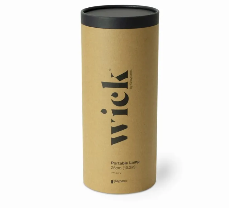 En aluminium, la baladeuse wick mesure 26cm de hauteur et 12cm de diamètre. Elle est rechargeable avec un câble USB-C.