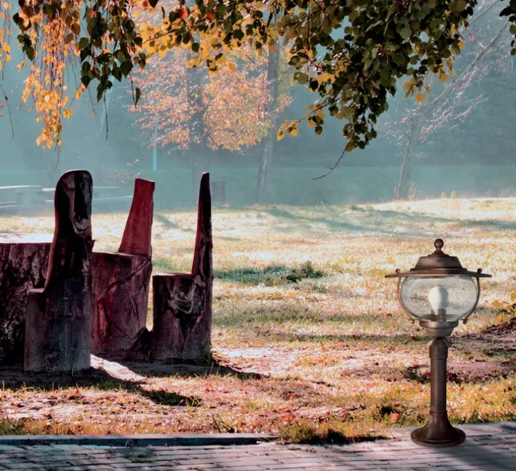 Elle peut également être utilisée dans des environnements très agressifs et dans des conditions atmosphériques difficiles comme les zones côtières ou la montagne. La couleur cuivre et la composition en laiton vieilli de la borne de jardin Betulle 2064 en font un luminaire robuste et simple au design unique.