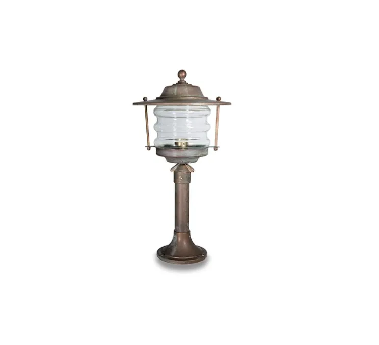 Elle peut également être utilisée dans des environnements très agressifs et dans des conditions atmosphériques difficiles comme les zones côtières ou la montagne. La couleur cuivre et la composition en laiton vieilli de ce lampadaire en font un luminaire robuste et simple au design unique.