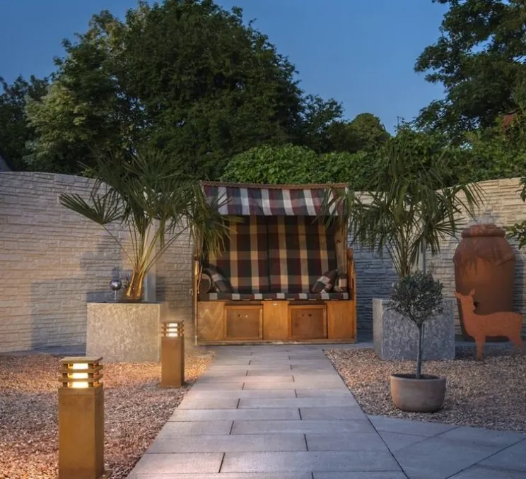 Les bornes de la collection Rusty séduisent par leur aspect rouillé original. Cet aspect est obtenu par un traitement chimique spécial de l’acier FeCSI utilisé. La rouille est un processus naturel, la texture et l’aspect évolue dans le temps selon l’exposition et les intempéries, c’est pourquoi les luminaires de la collection Rusty sont uniques.
