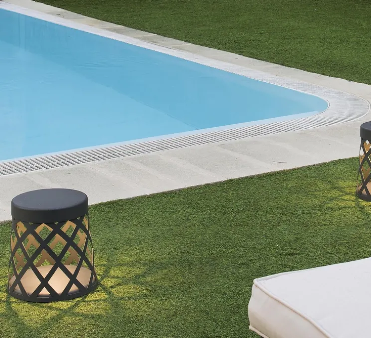 Cette balise extérieure, en fonte d’aluminium et son verre opalin, procure de jolies ombres projetées sur le sol grâce à son corps tressé.
