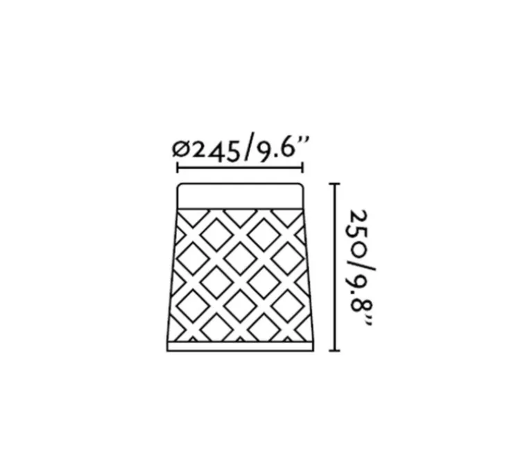 Sa hauteur est de 25 cm et son diamètre est de 24.5 cm