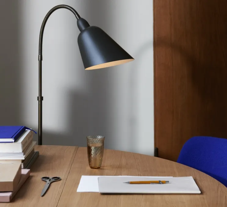 Pour le 120ème anniversaire d’Arne Jacobsen, découvrez la lampe Bellevue en édition limitée dans une finition gris pierre et laiton bronze.