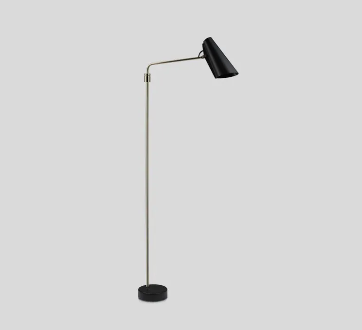 Cet intemporel du design est décliné en applique, lampadaire et lampe à poser. Birdy Swing est disponible en noir avec les joints couleur noir, laiton ou acier.
