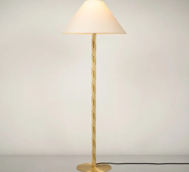 Ce lampadaire décoratif d’intérieur s’inscrit dans la continuité du savoir-faire français de la maison, valorisant le travail du laiton façonné sous forme de tubes. Cette création reflète l’approche rigoureuse et épurée de la marque, tout en portant une attention particulière à la qualité des finitions.