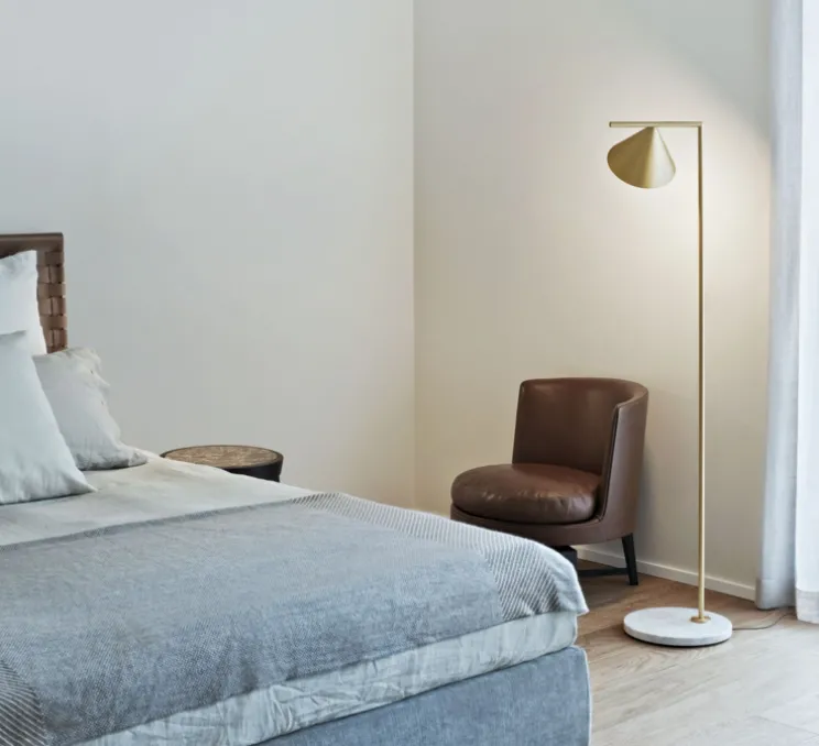 Lorsque Michael Anastassiades dessine le lampadaire Captain Flint, il souhaite avant tout réaliser une lampe à double fonction : diffuser une lumière à travers toute la pièce pour permettre un véritable éclairage mais aussi canaliser cette même lumière pour une activité précise, une lecture, une écriture, une couture…