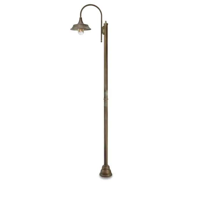Il peut également être utilisé dans des environnements très agressifs et dans des conditions atmosphériques difficiles comme les zones côtières ou la montagne. La couleur cuivre et la composition en laiton vieilli de ce lampadaire en font un luminaire robuste et simple au design unique.