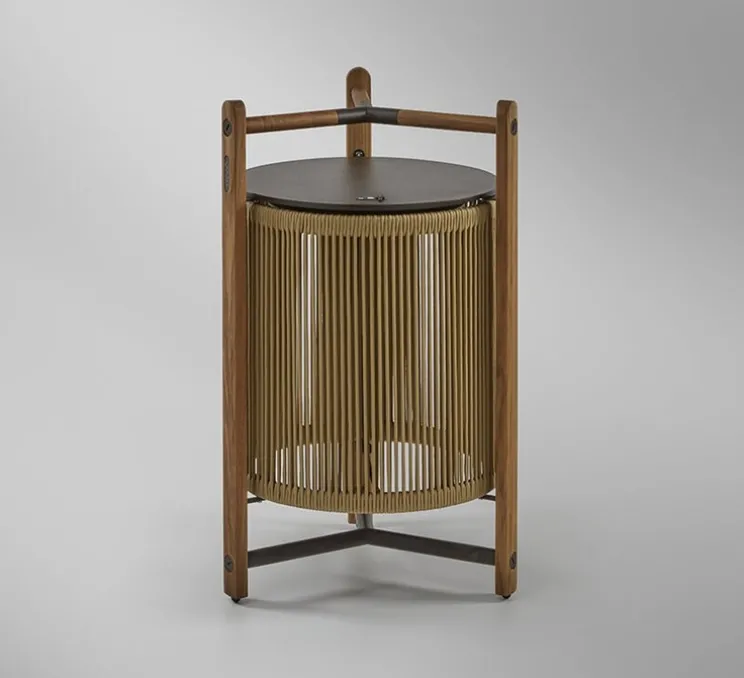 Inspirée par l’esthétique japonaise, cette lampe élégante marie à la perfection fonctionnalité et design. Les lampadaires Kando diffusent une lumière chaude et accueillante, filtrée à travers un abat-jour unique en ruban pour l’intérieur ou en corde nautique pour l’extérieur. Leur structure légère en bois de teck fait office de poignée, facilitant ainsi leur transport. Grâce à un bouton poussoir manuel, vous pouvez ajuster la température de couleur selon vos préférences, avec des options de 2200K, 2400K et 2700K.