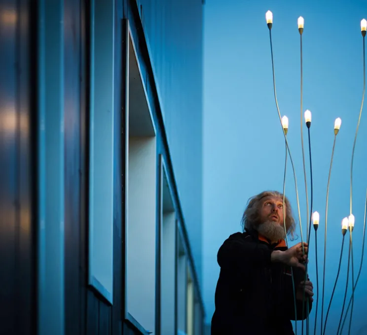 Il est disponible en version indoor et outdoor. Ici le lampadaire est en cuivre vert de gris sur la version outdoor.