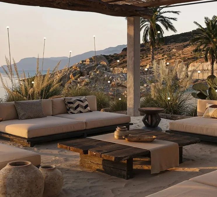 La lampe sur pied d’extérieur Minuit de Karman, signée par Edmondo Testaguzza et Matteo Ugolini, évoque un champ de tiges fines surmontées de points lumineux, tels des fleurs sauvages illuminant la nuit.