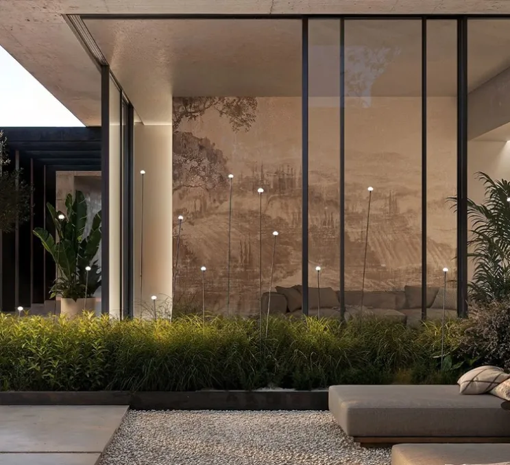 Il libère une lumière douce à 3000K. Avec une hauteur de 105 cm et un diamètre de 5 cm, il allie finesse structurelle et légèreté visuelle, tout en étant conçue pour résister aux conditions extérieures.
