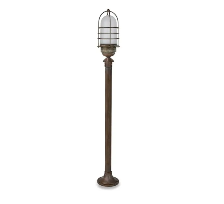 Affichant un design vintage, ce lampadaire est fabriqué en laiton moulé sous pression avec une finition en vieux cuivre, lui conférant un aspect vieilli authentique.