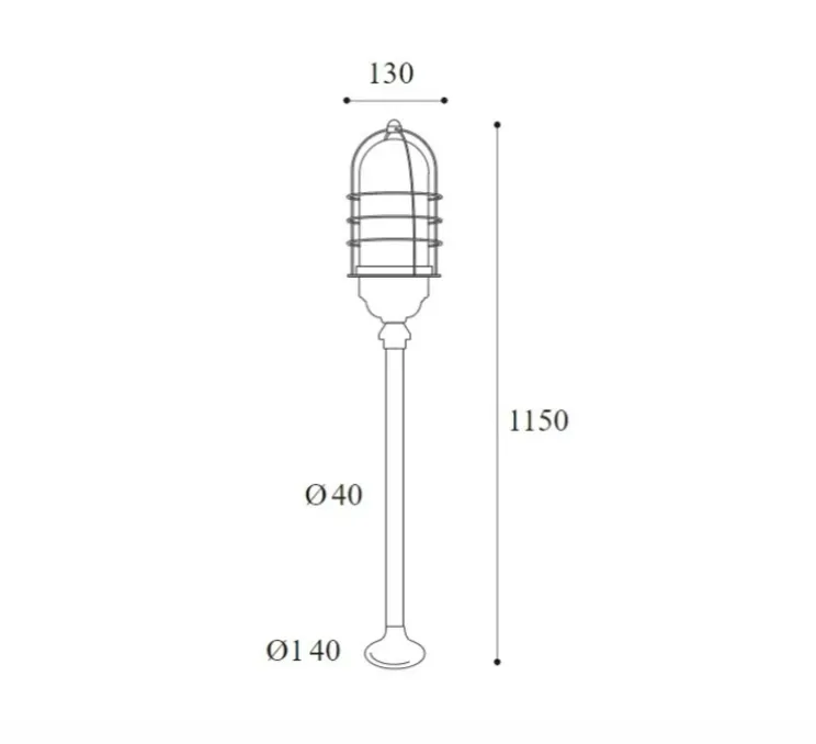 Torcia 1860 mesure 13 cm de diamètre et 115 cm de hauteur. La source lumineuse E27 n’est pas incluse.