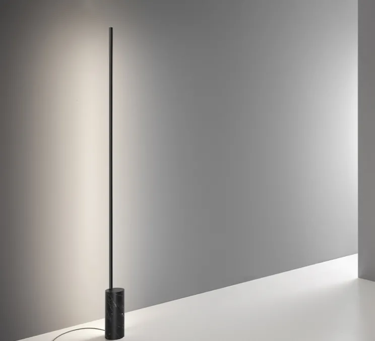 Le luminaire Hilow se composé d’une longue tige lumineuse fixée à une base en marbre. Module linéaire extrêmement fin et également discret dans son émission de lumière, le lampadaire Hilow procure un agréable effet de lumière indirecte et tamisée, se fondant dans chaque style d’intérieur, que soit dans une résidence privée minimaliste ou des bureaux maximalistes.