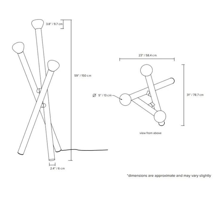 Le lampadaire mesure 150cm de hauteur pour une profondeur maximale de 31cm.