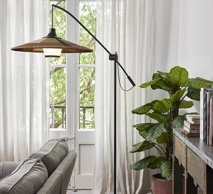 Parrot se compose d’un corps en métal noir et d’un abat-jour déporté tissé de fil d’abaca. Prenant ses inspirations dans l’art ancestral qu’est la vannerie et dans des camaïeux issus de paysages, la lampe à poser Parrot se place dans chaque intérieur, dans une entrée, une chambre ou un salon.