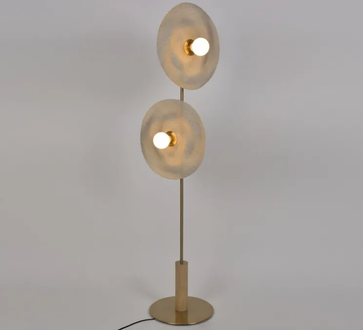 Ce lampadaire mesure 185 cm de hauteur et 50 cm de diamètre. Il est équipé de deux points lumineux. Ce lampadaire est composé d’une lumière avec abat-jour en matière Varian® et est équipé d’un cordon textile.