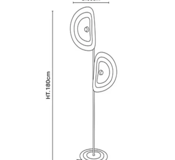 Selenitis 2L mesure 180 cm de hauteur pour un diamètre de 60 cm. Il offre un éclairage fixe et fonctionne avec deux sources lumineuses. Il diffuse une lumière douce et tamisée, idéale pour un espace de détente.