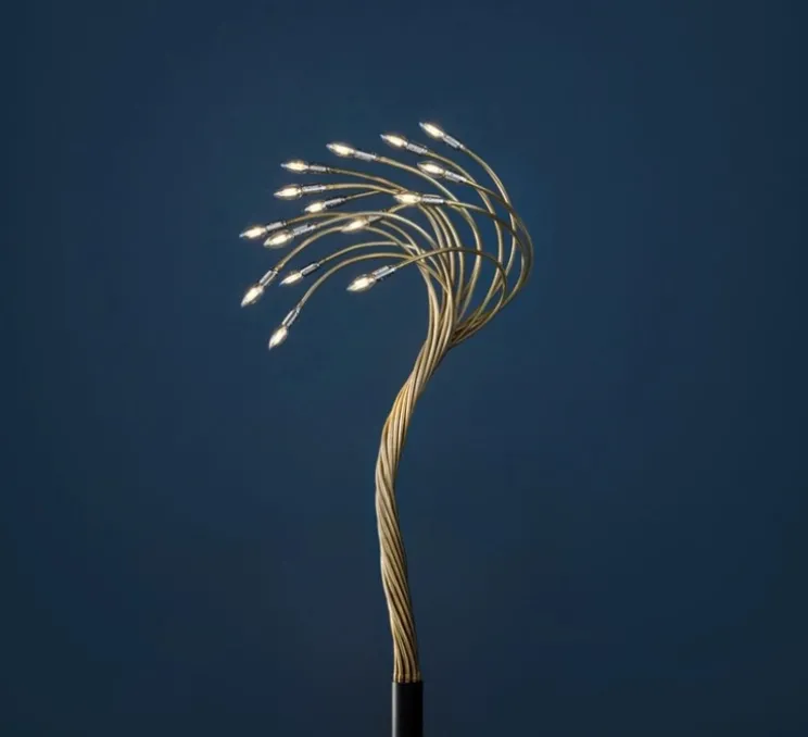 Son design épuré est sublimé par des tubes flexibles modulables en laiton ou en nickel, permettant d’ajuster l’orientation de la lumière selon vos besoins. Sa structure élancée en fait un élément décoratif sophistiqué, parfait pour sublimer un salon, un coin lecture ou un hall d’entrée.