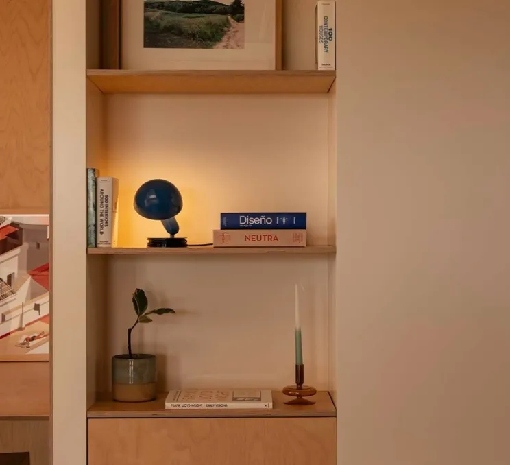 Inspirée du design industriel rétro, la lampe à poser Bela bleue, conçue par Faro Lab, revisite l’esthétique des luminaires classiques tout en y intégrant une modularité contemporaine.