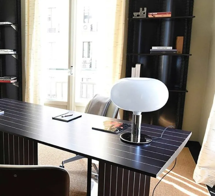 Dénichez la lampe à poser AM1N en finition noir avec un diffuseur blanc opalin de la maison Nemo Lighting.
