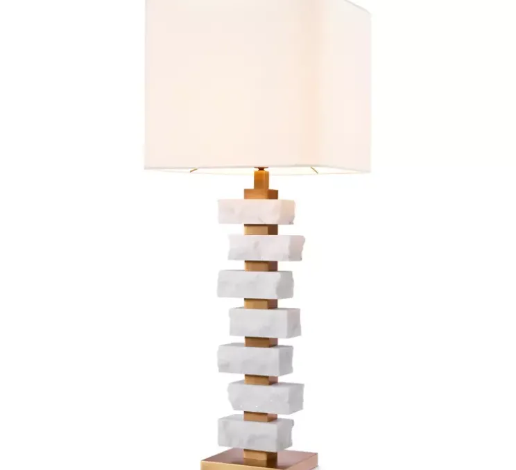 La finition en laiton antique confère à cette lampe une élégance intemporelle. Chaque détail est méticuleusement travaillé, ajoutant une touche de raffinement à votre décor. La base en marbre blanc brut ajoute une dimension organique, apportant une beauté naturelle à cette lampe déjà magnifique. L’intégration subtile de la base à l’abat-jour crée une transition fluide entre les matériaux, capturant l’essence de l’élégance et de l’unité.