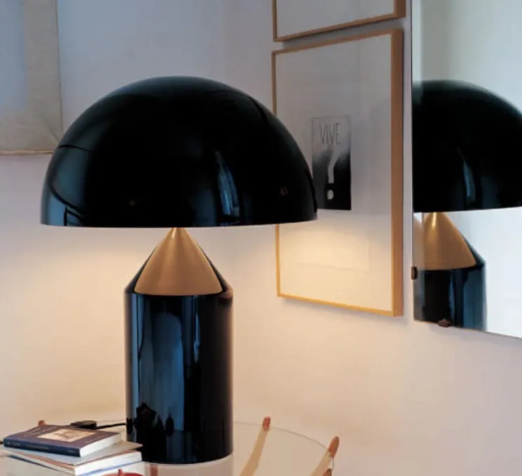 La lampe à poser Atollo noire est signée de Vico Magistretti et éditée en 1977 par la maison Oluce.