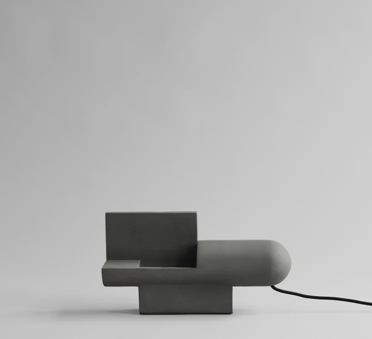 Découvrez la lampe à poser Brutalist conçue par Kristian Sofus Hansen et Tommy Hyldahl pour la maison danoise 101 Copenhagen.