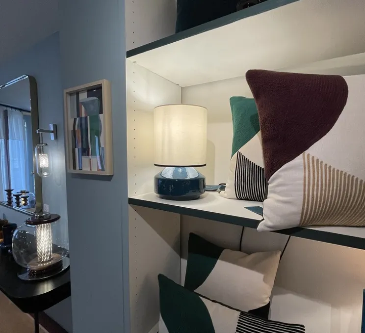 Les caractéristiques de la lampe « Claude » comprennent un pied en céramique colorée avec un émail réactif qui lui confère une apparence unique. L’abat-jour est en coton épais légèrement chiné, apportant une texture intéressante à la lampe. La ganse basse de l’abat-jour est également colorée, ajoutant une touche de contraste, tandis que la ganse haute est ton-sur-ton pour une finition harmonieuse. Une ganse écru verticale est utilisée pour parfaire l’aspect de l’abat-jour. De plus, une feutrine recouvre le dessous de la lampe pour protéger les surfaces sur lesquelles elle repose. Elle est équipée d’une prise et d’un interrupteur, ainsi que d’un cordon noir.