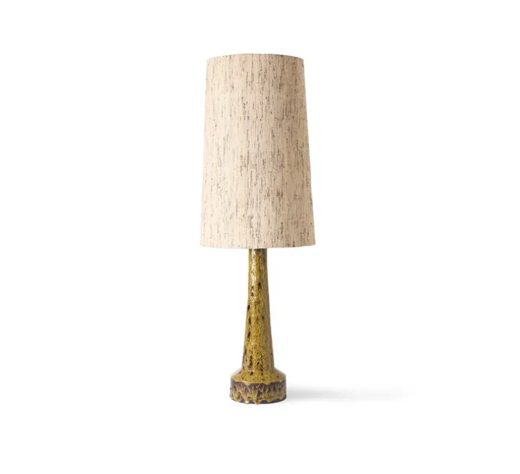 Voici la lampe à poser signée par le studio HK Living. Venue tout droit des années 60 et 70, la lampe possède un abat-jour fabriqué en soie tissée à la main et une base en grès moutarde à la finition émaillée. Cette lampe apporte une touche de couleur et de raffinement à votre intérieur et s’adapte dans n’importe quelle pièce.