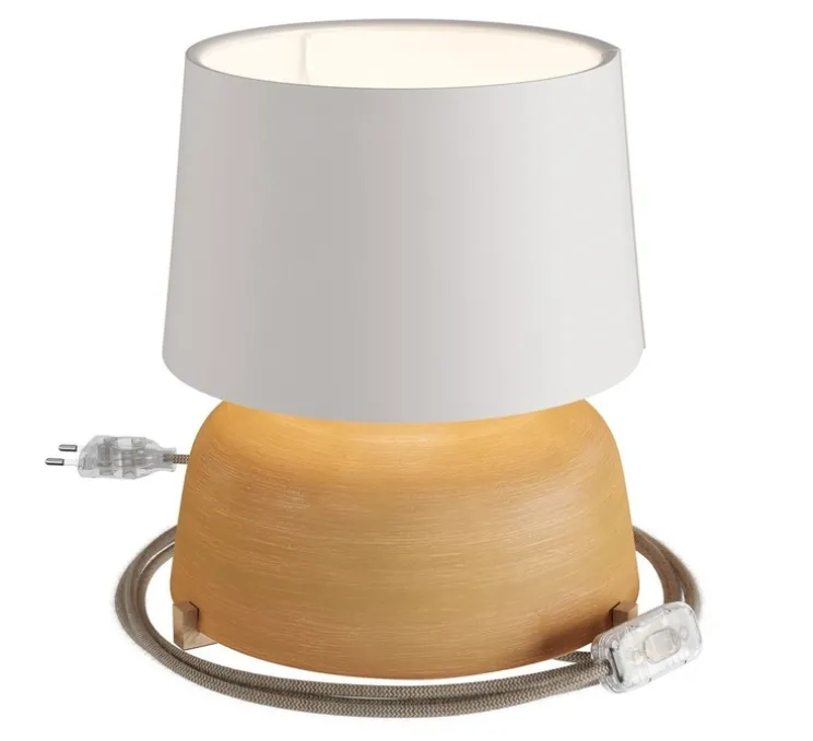 Fabriquée en Italie, cette lampe élégante et fonctionnelle, pensée en 2024, associe la céramique terracotta et le tissu pour un rendu artisanal et intemporel.