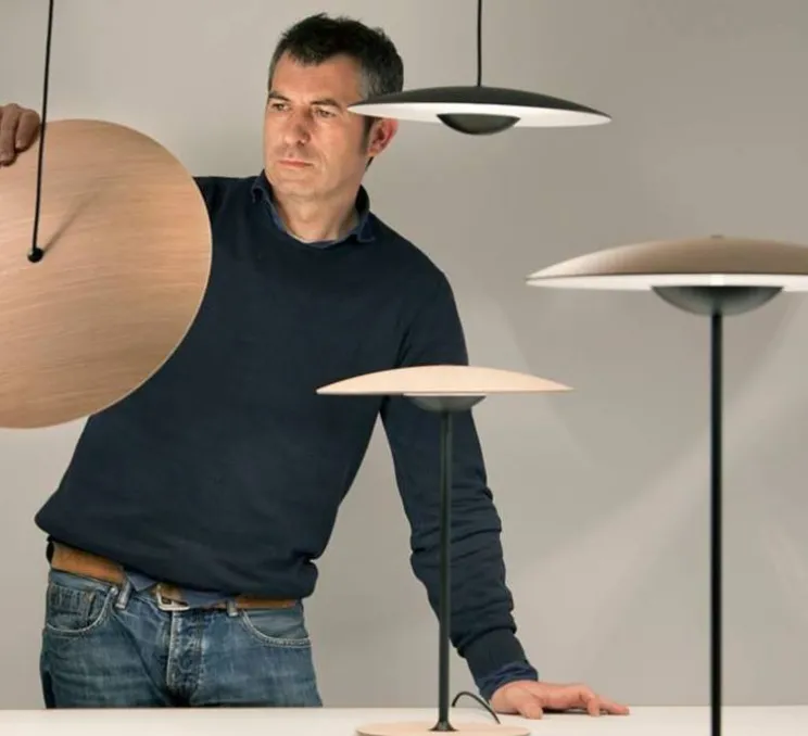 Cette lampe à poser créée par Joan Gasper pour la maison Marset fait référence à un disque de lumière extrêmement léger et rend hommage aux tambours de Ginger Baker de Cream, le groupe de rock des années 1960.