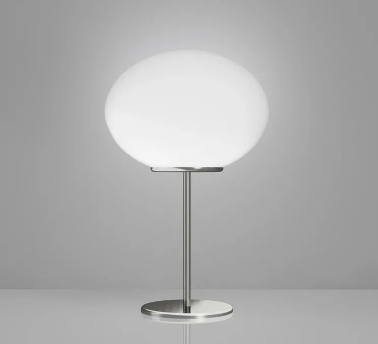Son abat-jour ovale en verre soufflé satiné, façonné à la bouche, diffuse une lumière douce et chaleureuse, idéale pour sublimer tout type d’intérieur.