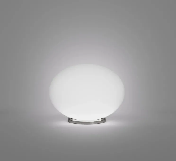 Son abat-jour ovale en verre soufflé satiné, façonné à la bouche, diffuse une lumière douce et chaleureuse, idéale pour sublimer tout type d’intérieur.