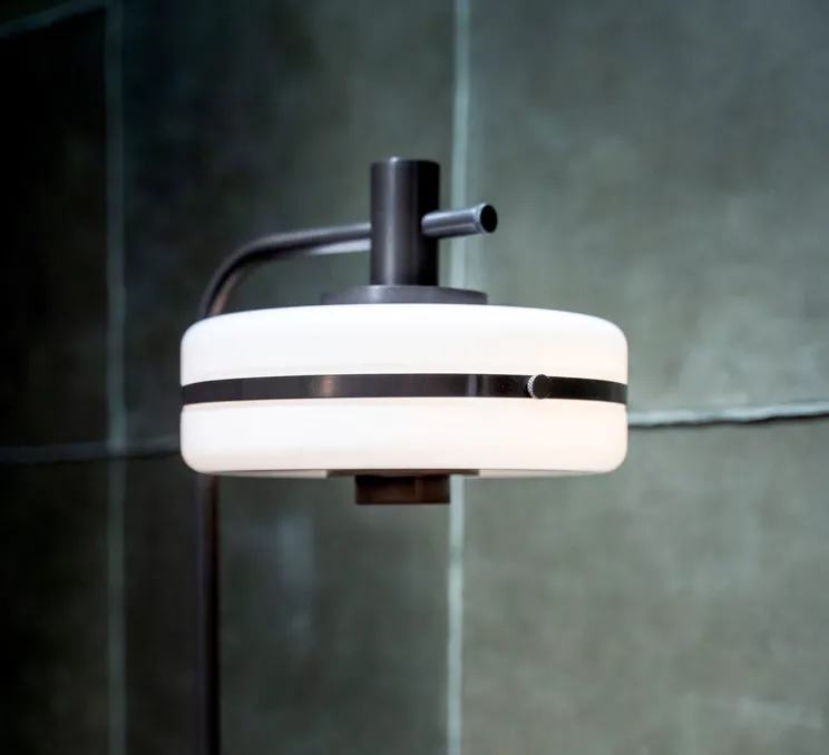 La lampe Masina 200 se distingue par ses formes arrondies et son diffuseur en opaline qui permet une diffusion lumineuse douce et uniforme à 360 degrés. Les touches de bronze ajoutent une finition chic et subtile.