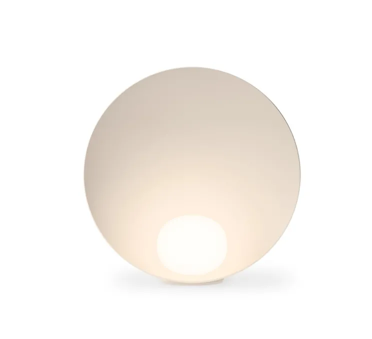 Musa est une lampe aux qualités organiques qui, en tant qu’objet lumineux, appelle le regard… Son apparence délicate établit une interaction entre la lumière émise par la petite boule en verre soufflé opalin et celle qui se reflète dans la coupelle où vient se loger la petite sphère.