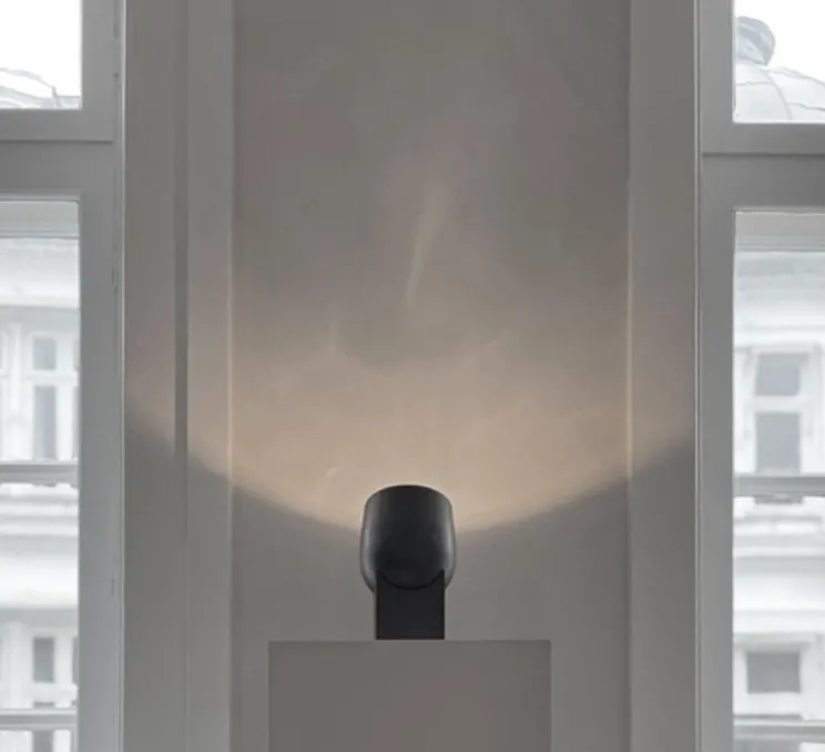 Avec son abat-jour rotatif en aluminium et sa base carrée en fer, elle peut mettre en valeur et projeter sur un objet ou une partie d’un espace. Dans un design simple mais raffiné et un ton de couleur bronze brossé, la lampe crée une atmosphère chaleureuse et invitante et joue comme par magie avec le contraste entre la lumière et les ombres.