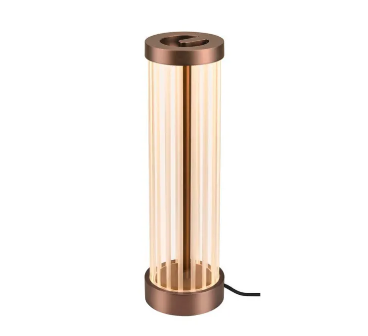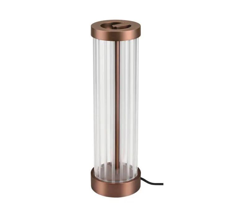 Avec son fini en cuivre brossé mat et son design cylindrique épuré, cette pièce incarne l’élégance intemporelle et s’intègre idéalement dans les espaces intérieurs contemporains.