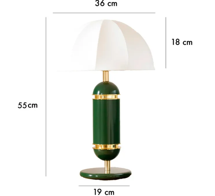 Véritable objet décoratif autant que luminaire, cette lampe fabriquée en France dispose d’un piètement en métal laqué avec des détails en laiton et est ici déclinée en finition vert. La lampe Rosalie trouve sa place aussi bien sur un buffet que sur une table d’appoint ou un bureau. De jour, elle attire le regard par son volume sculptural qui structure l’espace. Le soir, son abat-jour en dôme diffuse un éclairage doux, créant une atmosphère enveloppante dans un salon, une chambre ou un espace d’accueil.
