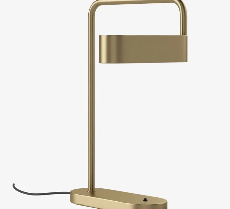 Voici Scribe, la lampe de table design et élégante en coloris laiton antique mat.