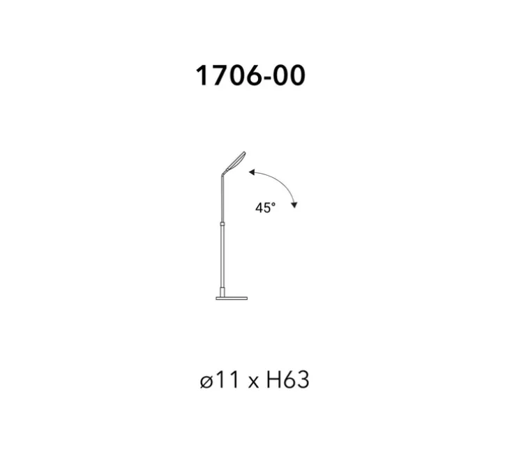 La lampe à poser Spoon mesure 11cm de diamètre et 63cm de hauteur. Le module Led intégré d’une puissance maximale de 4W diffuse 600 lumens avec une colorimétrie de 3000K offrant un éclairage puissant et confortable. Le variateur se trouve sur le câble noir d’1m80. Orientation verticale : 45°.