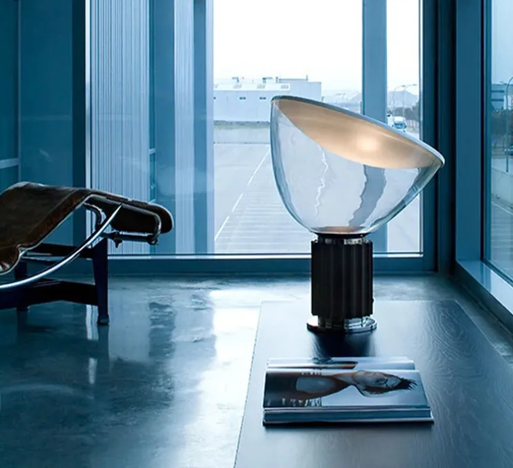 Taccia est une lampe à poser dessinée par les frères Castiglioni en 1962 pour la marque Flos.