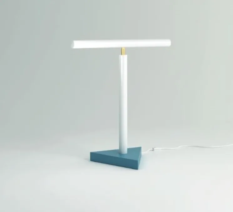 Découvrez Tube with triangle, la lampe de table imaginée par Gwendolyn et Guillane Kerschbaumer pour la maison d’édition Allemande Atelier Areti.