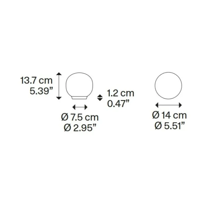 L’applique fait 14 cm de diamètre et possède une base qui mesure 7,5cm de diamètre pour 1,2cm de hauteur. Cela lui confère une flexibilité d’installation. Placez-la sur une table d’appoint, une étagère ou une console pour créer un point focal lumineux et amusant dans votre espace.