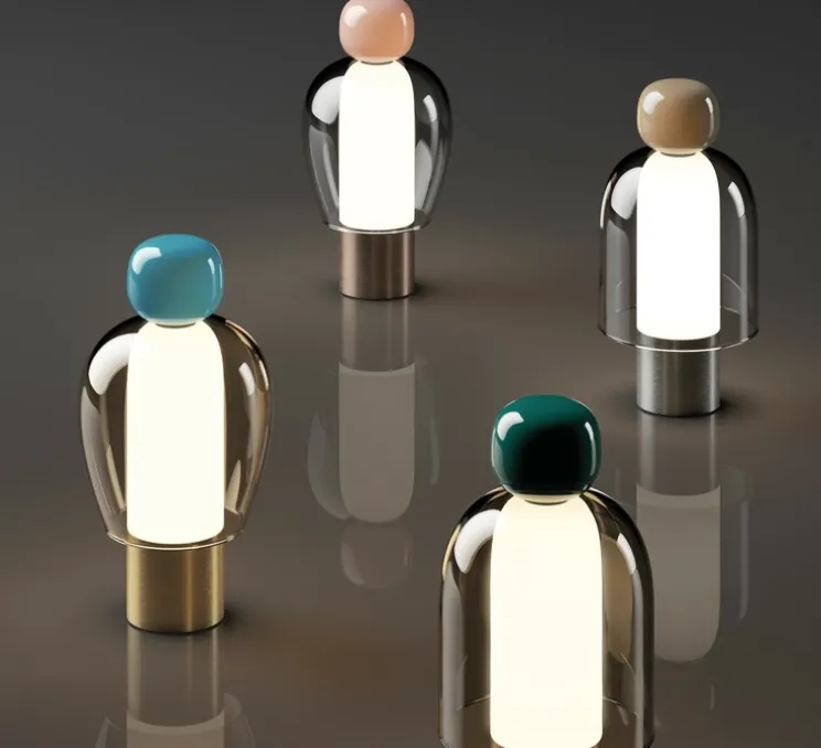 La lampe baladeuse Lagoon séduit par son design organique inspiré des formes des cloches; emblême de l’Italie, son pays natal. Sa silhouette rappelle celle d’une personne, avec un corps élancé et un pommeau faisant office de tête.