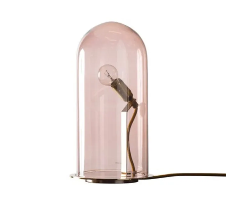 Une luminaire rose fumé habillé d’une base en finition laiton de style scandinave la lampe apporte une touche bohème chic et de la fraicheur dans votre salon, chambre, bibiothèque… Cette lampe qui nous rappelle une cloche magnifie l’ampoule et diffuse une lumière douce et chaleureuse.