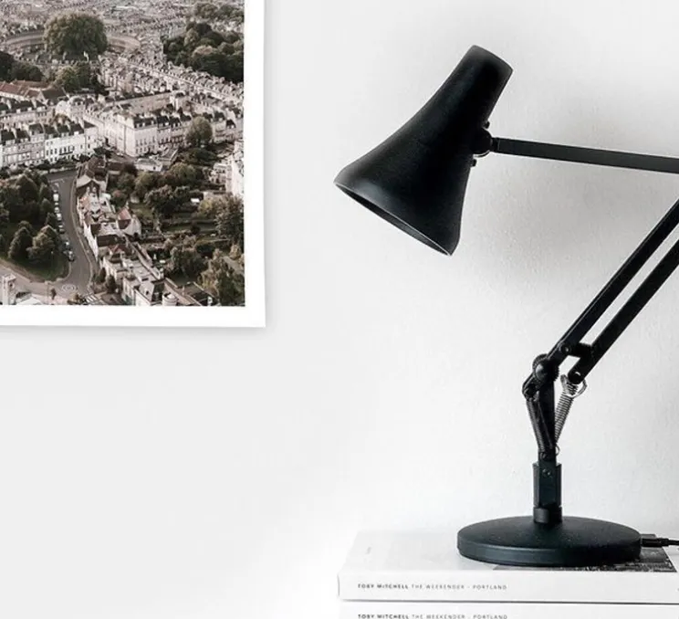 Voici la lampe de bureau 90 mini mini en coloris noir carbone de la maison britannique Anglepoise, c’est le célèbre designer Sir Kenneth Grange qui est à l’origine de sa création ! Ce modèle rejoint donc les modèles iconiques de la marque, toujours avec un côté rétro et british !