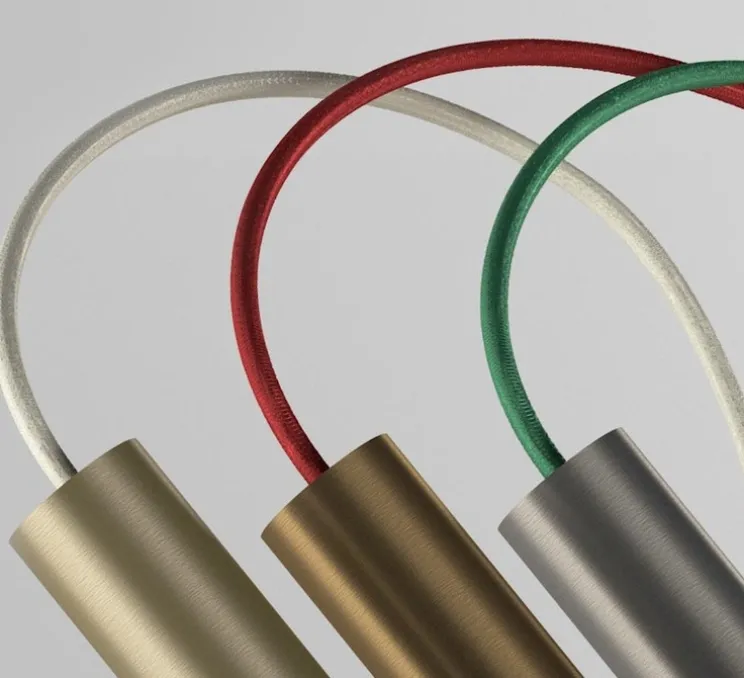 Existe en coloris bronze (câble textile bordeaux) et champagne (câble textile champagne).